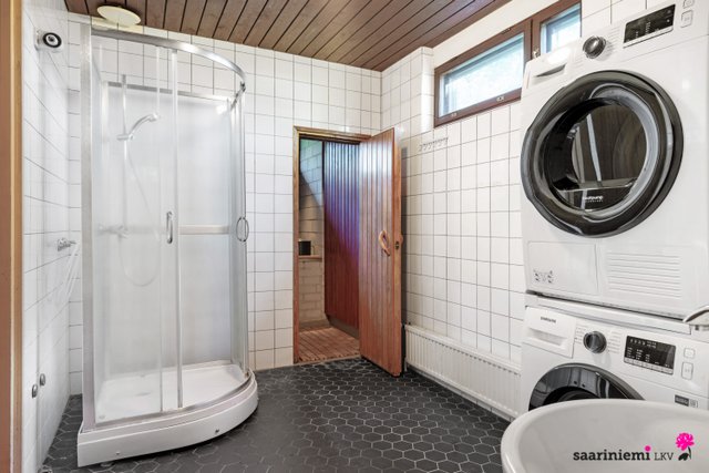 - Suihku, suihkukaappi, pesukoneliitäntä, ja pesuallas