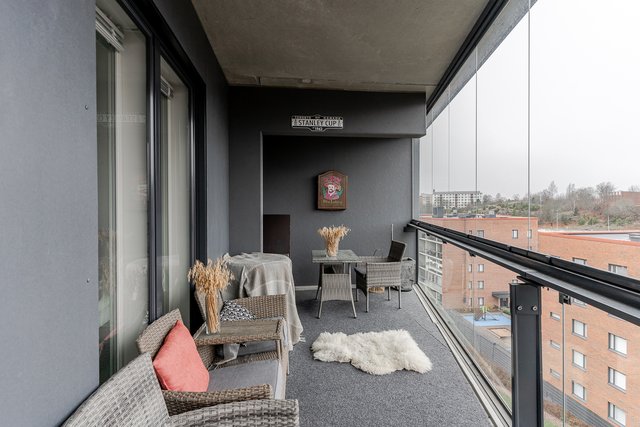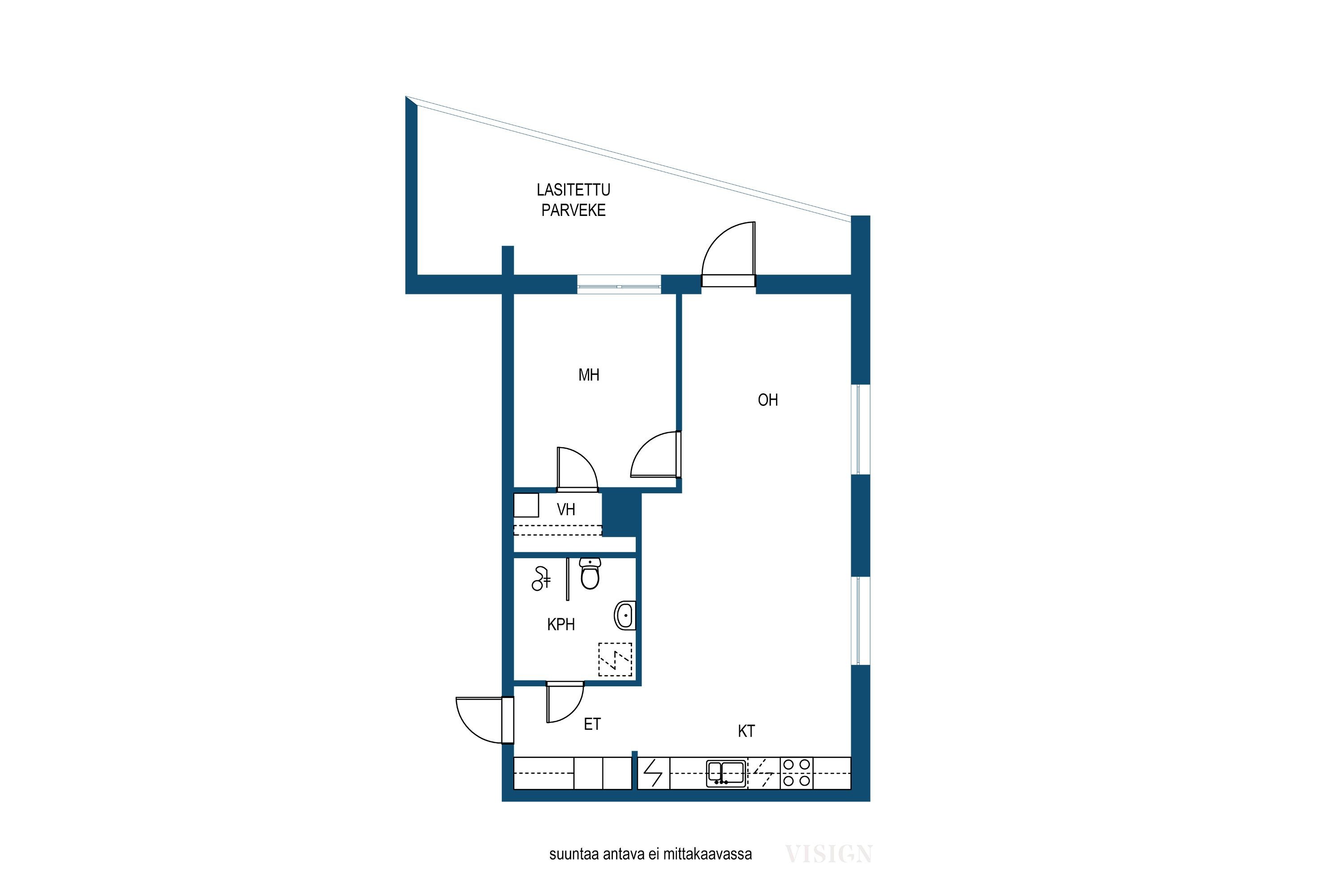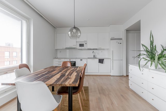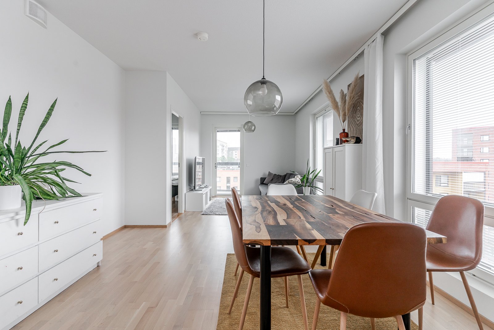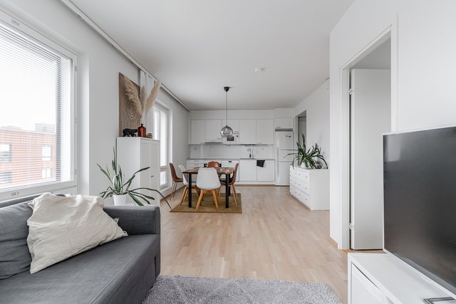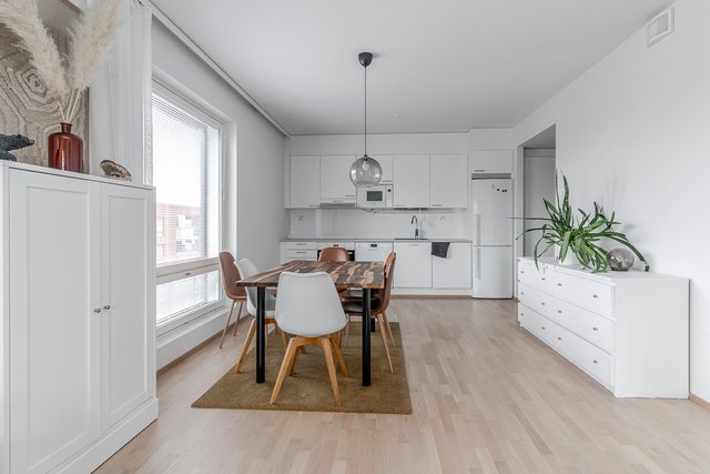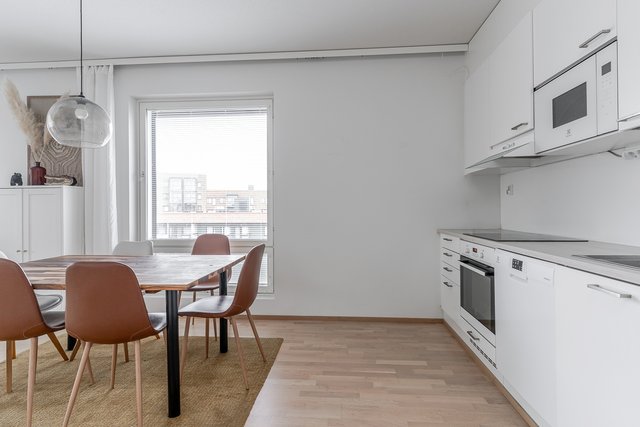 Keittiö on varusteltu laadukkailla kodinkoneilla, kuten induktioliesi ja astianpesukone, jotka tekevät arjesta sujuvaa. Tilava kylpyhuone lattialämmityksellä tuo mukavuutta kylmiin talviaamuihin. Kylpyhuoneessa on tila pesutornille. Lisäksi asunnossa on iso lasitettu parveke, jossa voit nauttia aamukahvisi rauhassa.