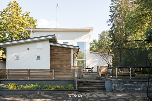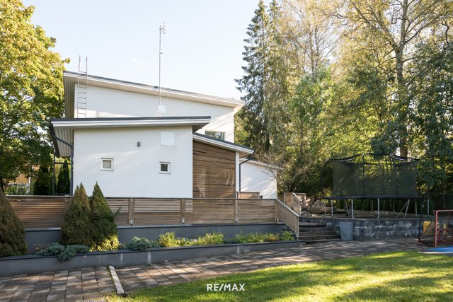 - Upea monitasoinen terassialue takapihalla, etupihalla sisääntuloterassi.