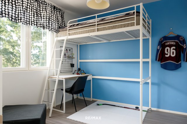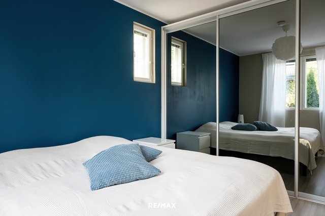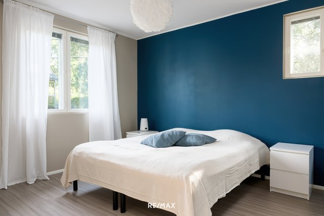 - Yläkerran kolmessa makuuhuoneessa lattiat laminaattia ja seinät maalattu, kaapistot. Päämakuuhuoneen yhteydessä oma kylpyhuone. Alakerran askarteluhuoneessa / makuutilassa lattia laminaattia ja seinät maalattu, käynti terassille sekä kylpyhuoneeseen.