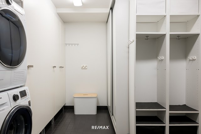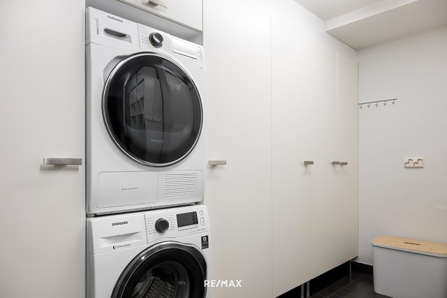 - Tilavassa kodinhoitohuoneessa lattia laattaa ja seinät laattaa / maalattu, runsaasti kaapistotilaa, tilaa pesutornille, allas, lattiakaivo, ilmanvaihtokone ja keskuspölynimurin yksikkö liukuovikaapistossa, pesupiste, käynti ulos.