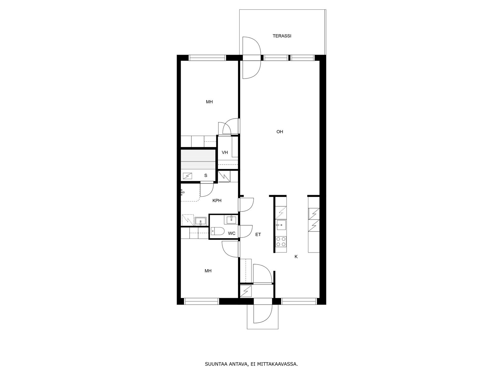 Alkuperäisestä pohjasta poiketen keittiö on siirretty ikkunalle, joka loi lisätilaa