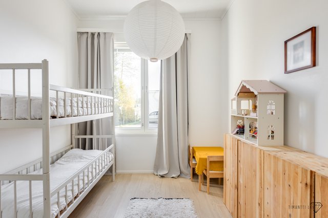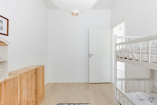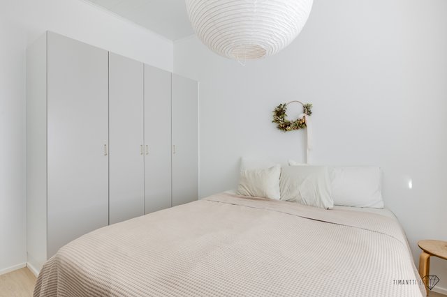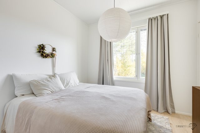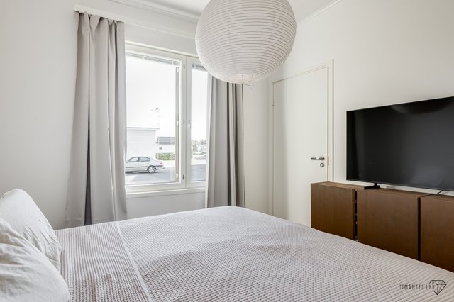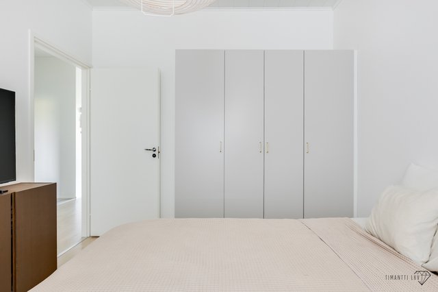Makuuhuoneet on hyvän kokoisia ja toisen makuuhuoneen yhteydessä on käytännöllinen vaatehuone.
