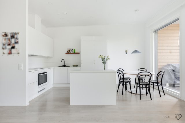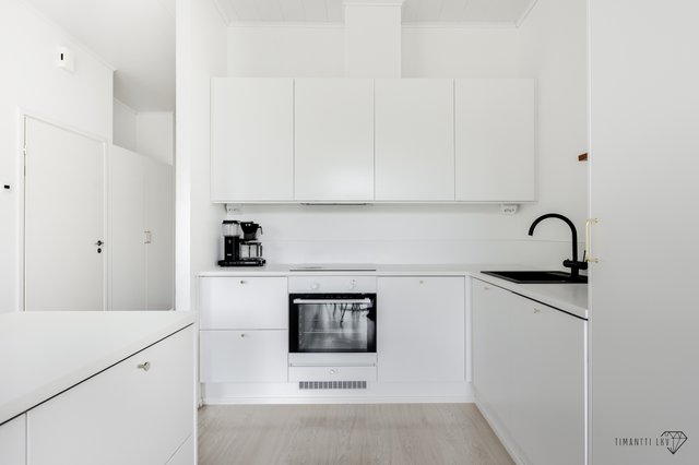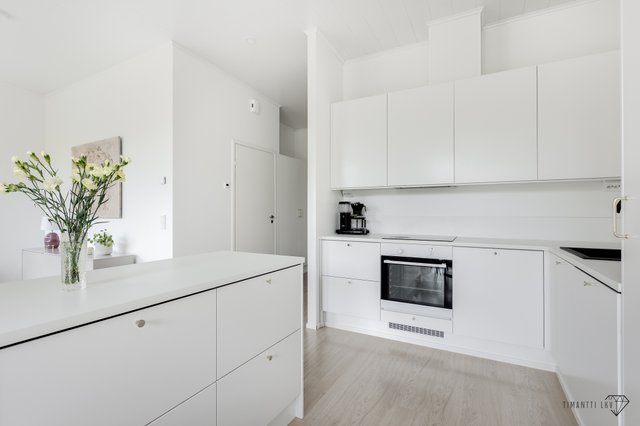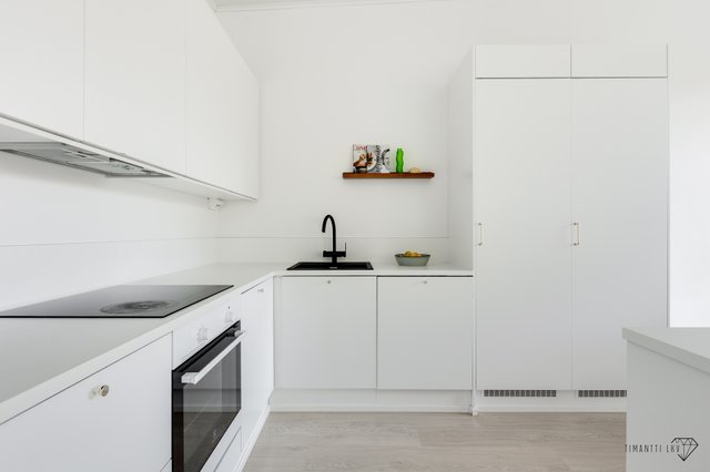 - Keittiössä integroidut kodinkoneet ja laadukkaat kalusteet