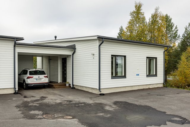 Autokatoksessa on paikka auton säilytykseen ja toinen paikka löytyy asunnon edustalta.