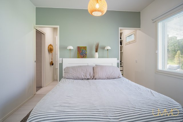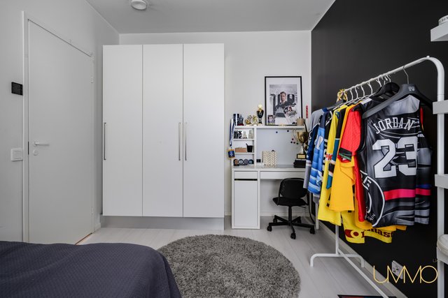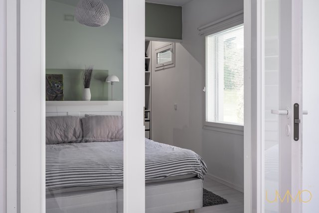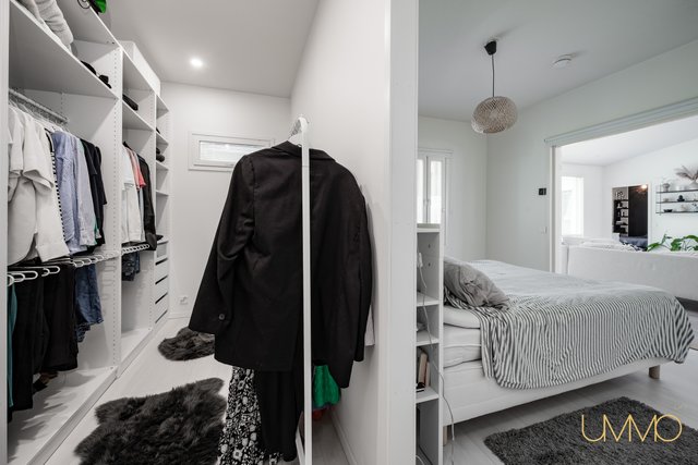 - Päämakuuhuoneen yhteydessä pukeutumishuone/vaatehuone. Toisen makuuhuoneen yhteydessä myös vaatehuone. Kahdessa makuuhuoneessa kaapistot.