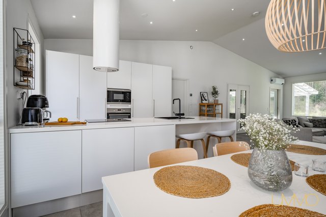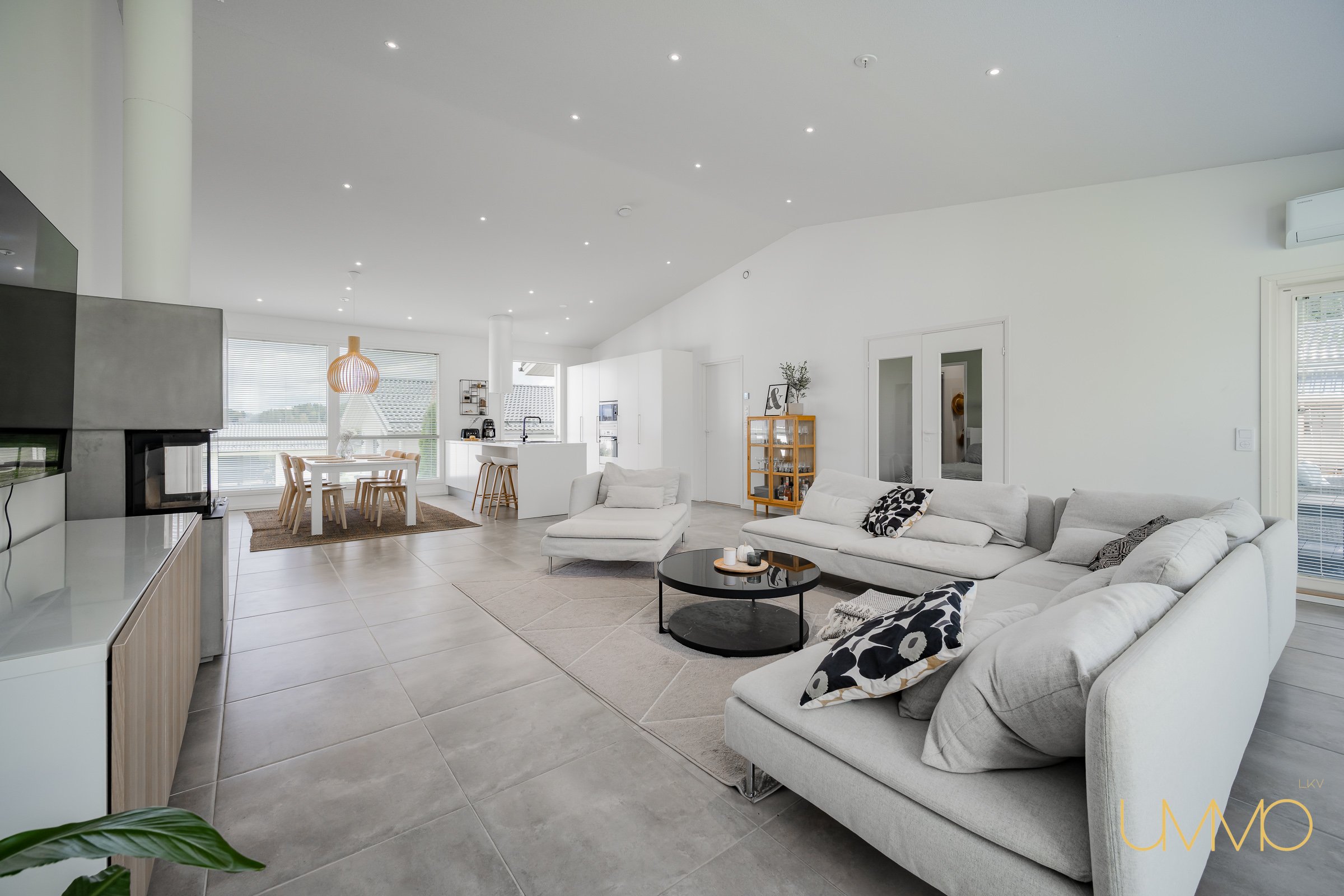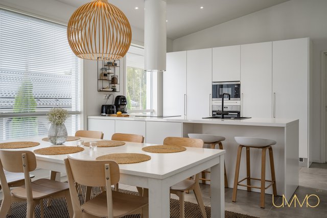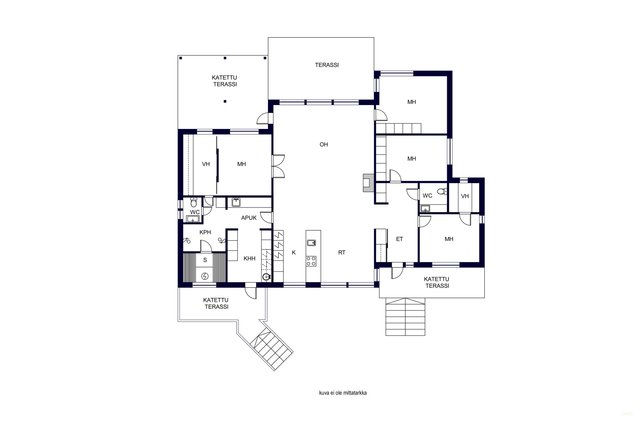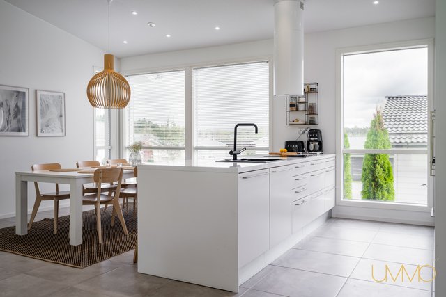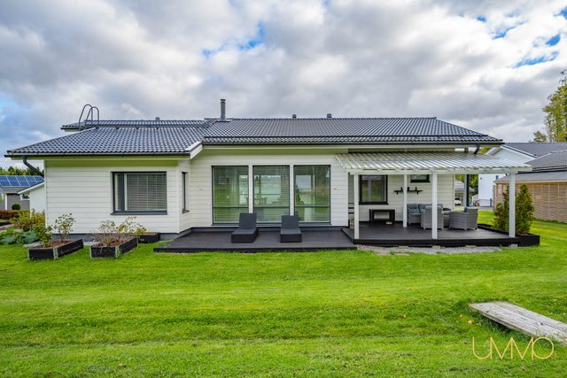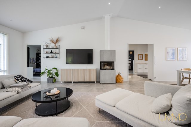 - Yhtenäistä avointa ja valoisaa tilaa keittiön kanssa. Olohuoneesta kulku osittain katetulle terassille. Varaava kiertoilmatakka. Ilmalämpöpumppu.