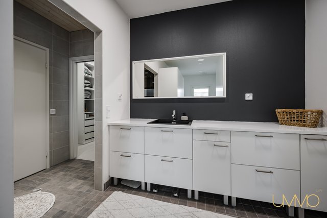 - Keittiön ja kodinhoitohuoneen välissä aputila, jossa mm. pesuallas ja kaapistot.