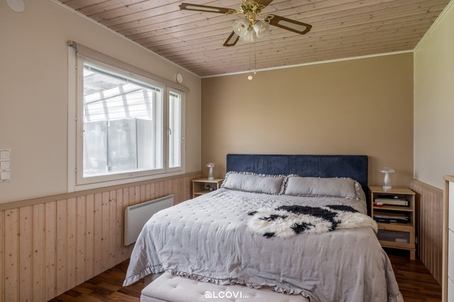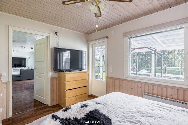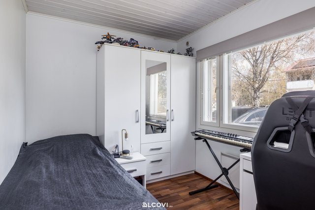 - Makuuhuoneita on 2 kpl. Seinät on osin paneloidut, osin maalatut, lattiat laminaattia. Kiinteä kaapisto.