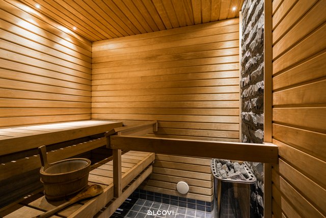 - Seinät ja katto paneloitu, lattia laatoitettu. Lauteet ja kiuas uusittu 2025.