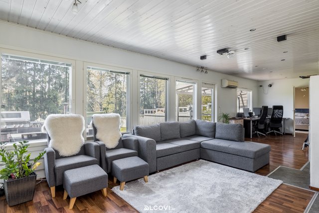 - Sälekaihtimet, rullaverhot, seinille kiinnitetyt hyllyt, ilmalämpöpumppu Polttopuut kuuluvat kauppaan