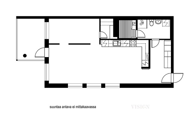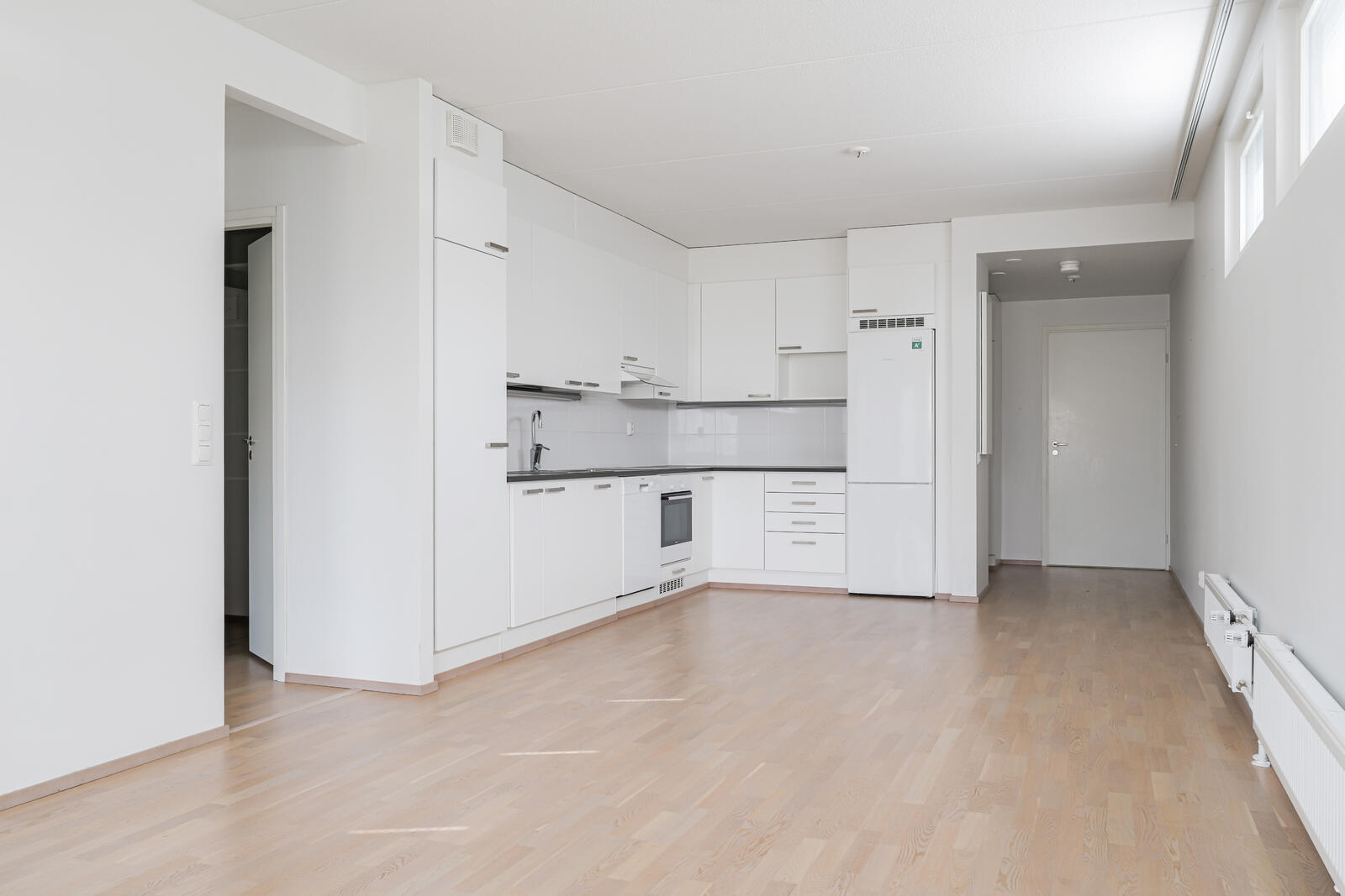 - jääkaappi/pakastin, keraaminen liesi, erillisuuni, pesukone, pesuallas, liesituuletin, paikka mikroaaltouunille, pöytätaso laminaatti, kaapisto, välitila kaakeli, lattia parketti, seinät maali.