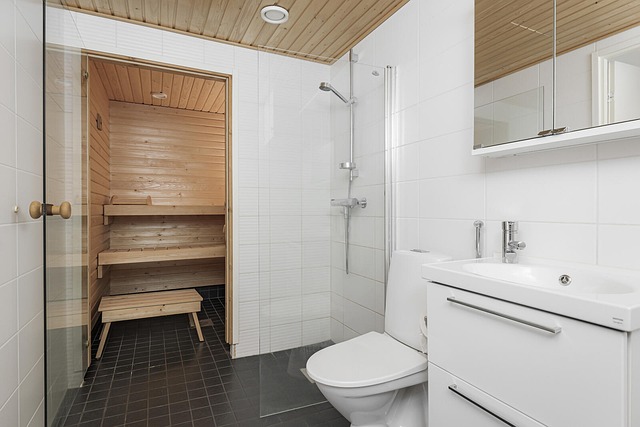 - suihku (seinä), pesukoneliitäntä, peilikaappi, pesuallas, allaslaatikosto, wc-istuin, bideesuihku, huoneistokohtainen ilmanvaihtokone, kokonaan laatoitettu. Vesikiertoinen mukavuuslattialämmitys.