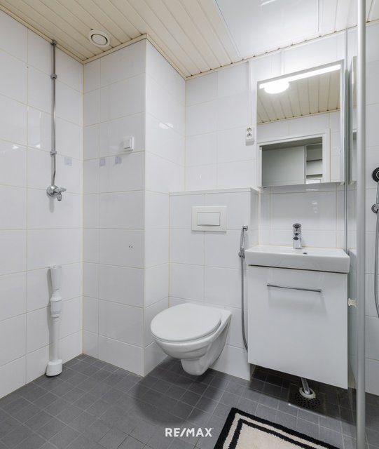 - WC-istuin, pesukoneliitäntä, peilikaappi, ja bidee-suihku