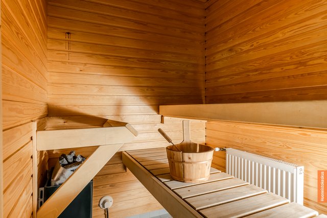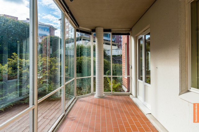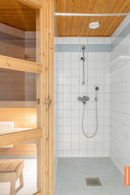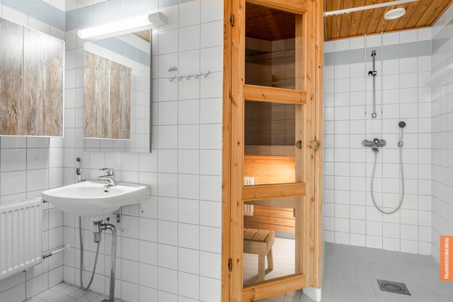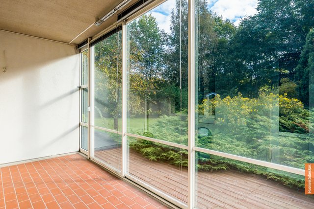 Tilasta avautuvat pariovet upealle lasitetulle terassille, joka on kuin toinen olohuone aikaisesta keväästä pitkälle syksyyn. Terassilla nautit tunnelmallisista illoista, kesäkahveista tai rauhallisista aamuista – säässä kuin säässä. Lasituksen jatkeena avautuu vielä oma aurinkoinen patio, jossa voit rentoutua ja nauttia kesäpäivistä täysin siemauksin.
