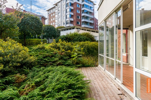 Tämä poikkeukselliseen koti yhdistää kaupunkielämän mukavuudet, luonnon läsnäolon sekä ajattoman tunnelman. Asunto sijaitsee talon pohjakerroksessa, jonne pääsee kulkemaan niin talon pääovien kautta kuin myös talon takapuolelta suoraan huoneiston omalle ovelle. Koti sijaitsee kauniin ja suojaisan puutarhan vieressä, joka tarjoaa yksityisyyttä ja rauhaa aivan Aurajoen tuntumassa.