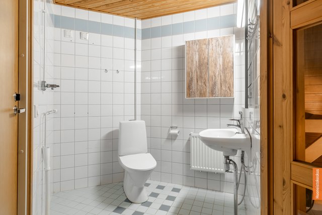 - Suihku, wc-istuin, peili, pesuallas, pesukoneliitäntä, ja bidee-suihku