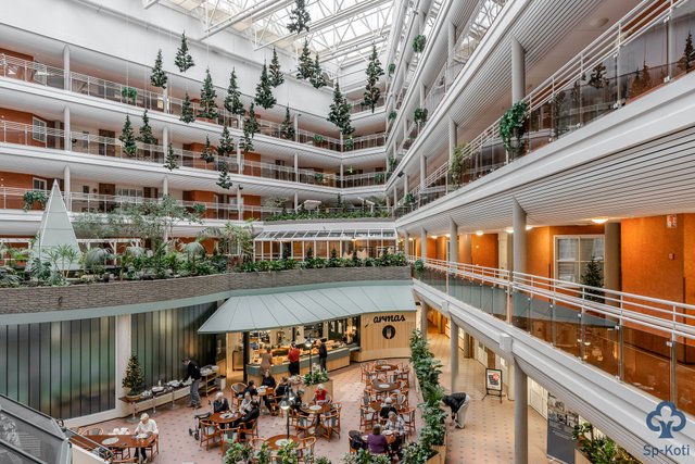 - Laajat palvelut samassa rakennuksessa, mm. lounasravintola, ruokakauppa, uima-allasosasto.