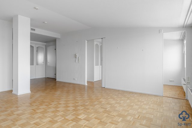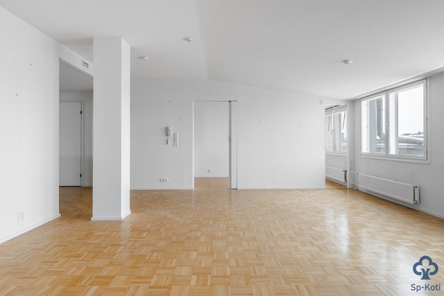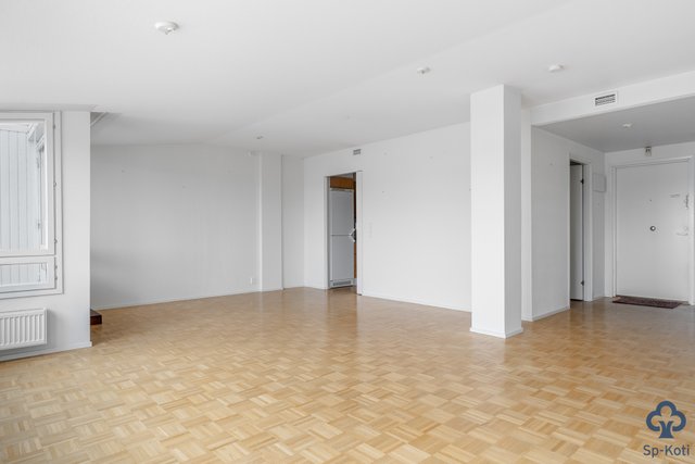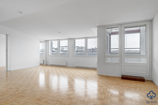 - Tilava ja valoisa olohuone, josta käynti lasitetulle parvekkeelle. Mosaiikkiparkettilattia.