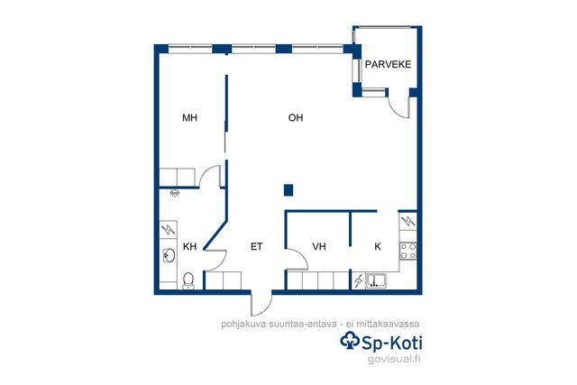 Asunto tarjoaa toimivan ja viihtyisän pohjaratkaisun. Tilava ja valoisa olohuone kutsuu viihtymään ja siitä on suora käynti parvekkeelle. Erillinen keittiö tuo arkeen käytännöllisyyttä, ja sen vieressä sijaitseva hyvän kokoinen vaatehuone tarjoaa runsaasti säilytystilaa. Kylpyhuone on laatoitettu sekä seinien että lattian osalta, ja kokonaisuus on siisti ja ajaton.