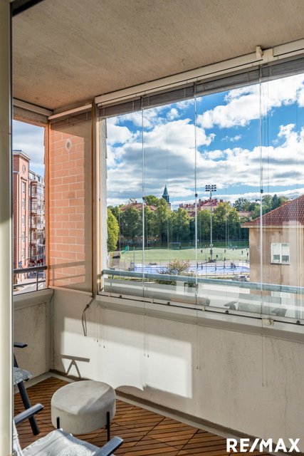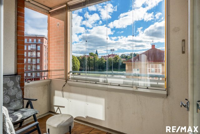 - Parvekkeelta avautuu näkymä Parkin kentälle