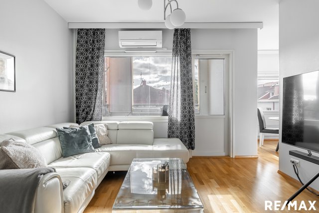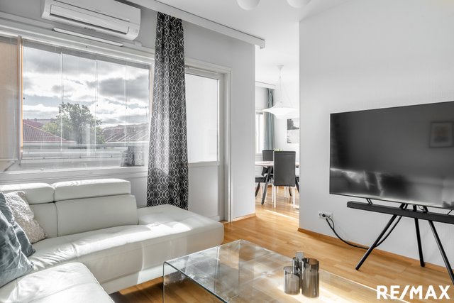 Asumismukavuus on tässä kodissa huippuluokkaa. Pääset nauttimaan omasta saunasta juuri silloin kun haluat, ja kerrostaloasuntojen harvinaisempi herkku, ilmalämpöpumppu, takaa miellyttävän viileyden kesähelteillä. Lisäksi tilava, lasitettu parveke tarjoaa viihtyisän olohuoneen jatkeen pitkälle syksyyn.