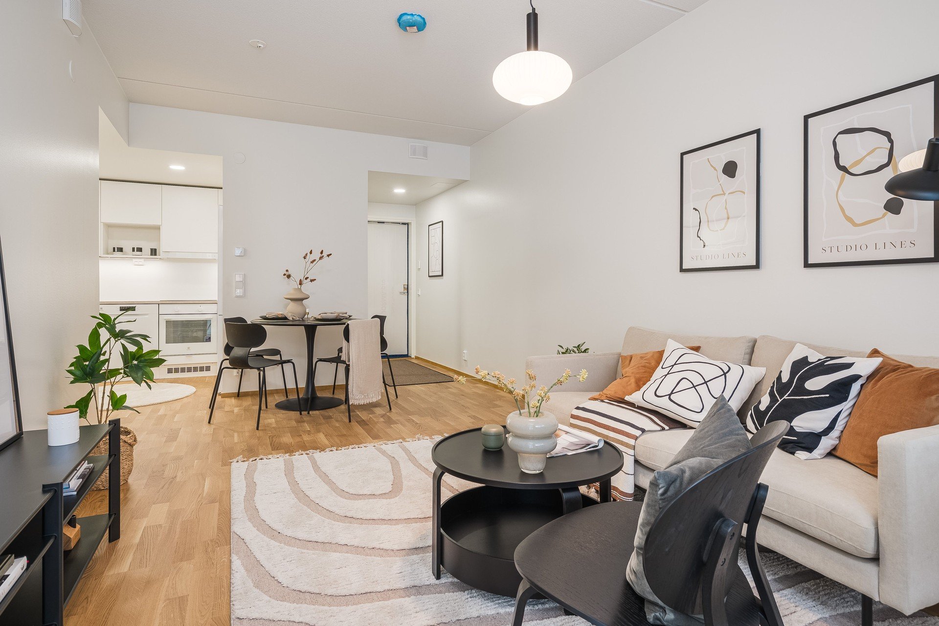 Tässä modernissa ja toimivassa kolmiossa on upea pohjaratkaisu, - kodissa on erilliset viihtyisät tilat kokkailuun, helposti kalustetta tila ruokailuun ja oleskeluun, sekä kaapilliset makuuhuoneet. Vaatehuone tuo sujuvuutta arkeen ja lasitettu parveke tuo lisätilaa oleskella. Asunnossa on vesikiertoinen lattialämmitys sekä kaukoviilennys. Asunnon laatu näkyy mm. Electroluxin kodinkoneissa, Novartin kaapistoissa ja hyvin valituissa, moderneissa pintamateriaaleissa.