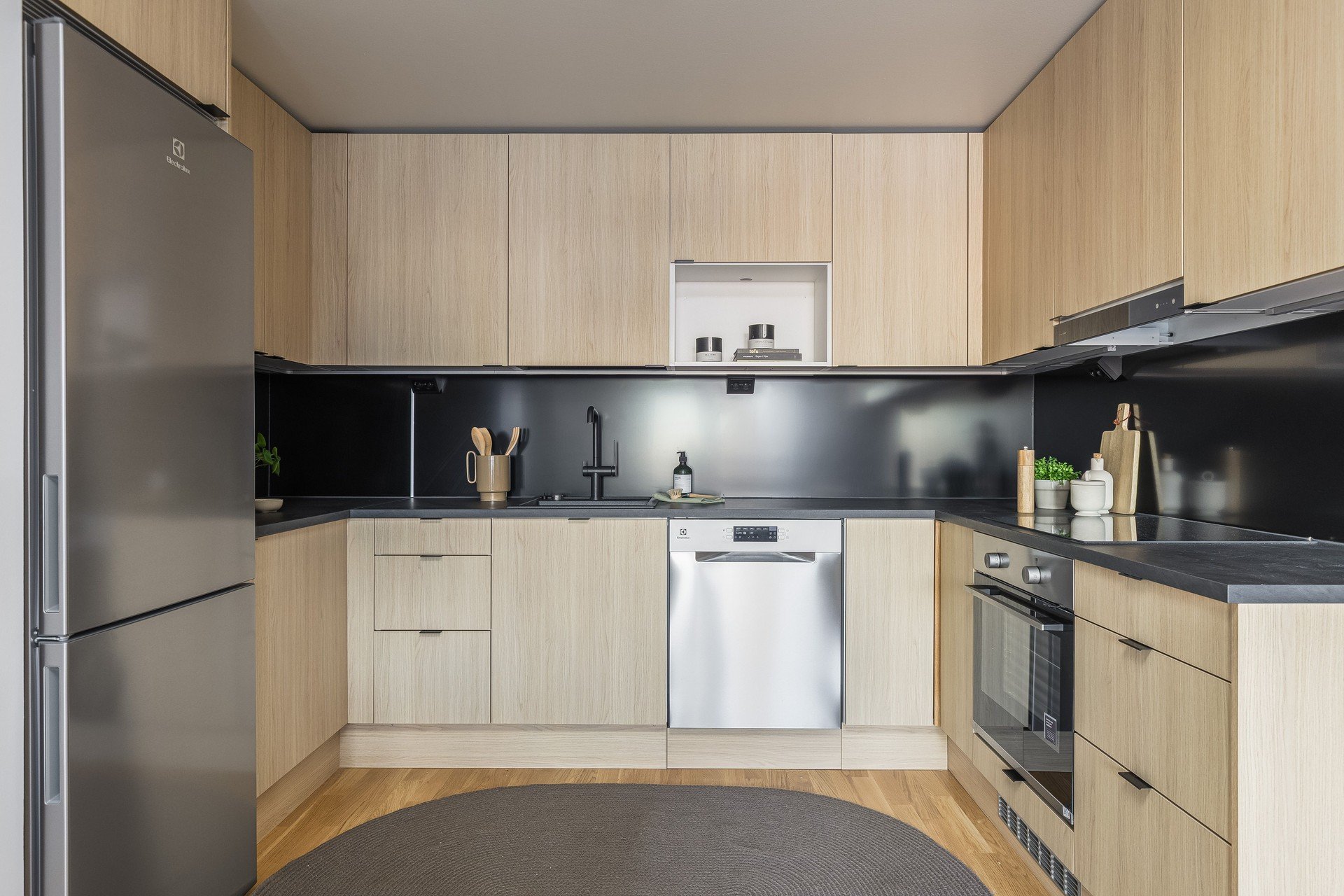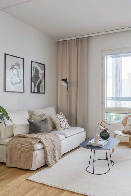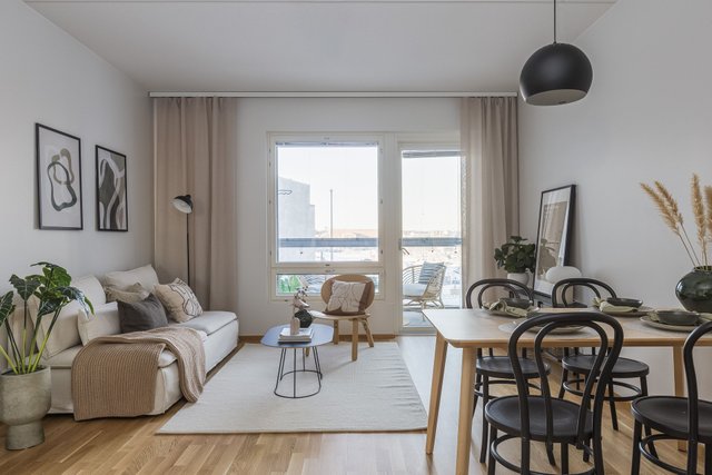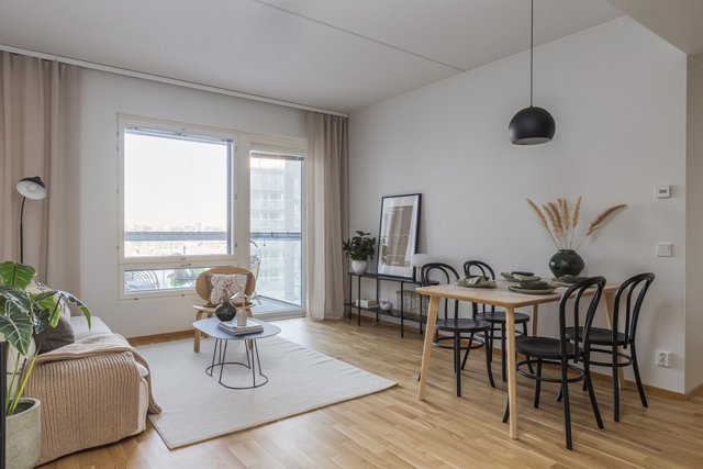 Tässä modernissa ja toimivassa kolmiossa on upea pohjaratkaisu, - kodissa on erilliset viihtyisät tilat kokkailuun, helposti kalustettava tila ruokailuun ja oleskeluun, sekä kaapilliset makuuhuoneet. Vaatehuone tuo sujuvuutta arkeen ja rentouttavia hetkiä tarjoaa oma sauna tilavassa kylpyhuoneessa. Lasitettu parveke tuo lisätilaa oleskella. Asunnossa on vesikiertoinen lattialämmitys sekä kaukoviilennys. Asunnon laatu näkyy mm. Electroluxin kodinkoneissa, Novartin kaapistoissa ja hyvin valituissa, moderneissa pintamateriaaleissa.