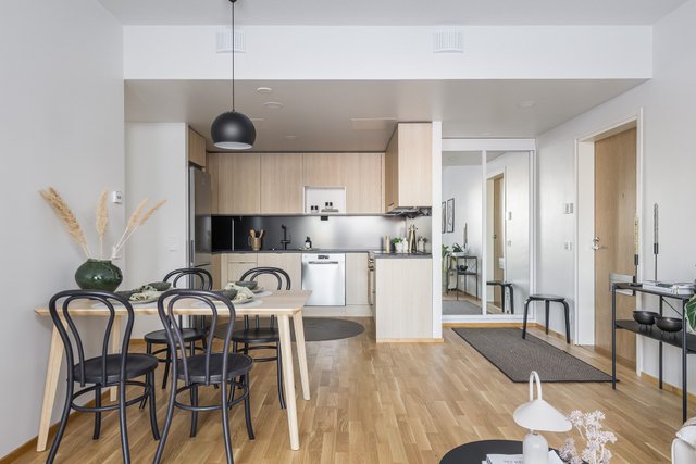 Asunto Oy Helsingin Sara on valmistunut 2025. Vapaiden kolmioiden (kerroksissa 5 - 9) keittiöiden sävymaailma vaihtelee asunnoittain valkoisesta greigen kautta tammensävyyn rosterisilla kodinkoneille. Kysy lisätietoja myynniltämme.