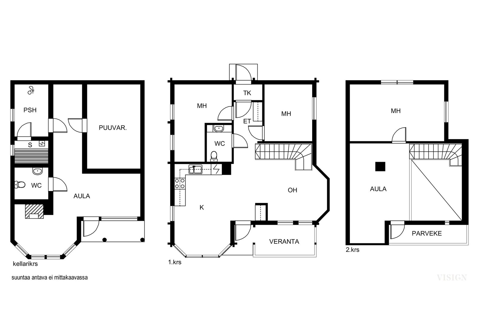 4h,k,th,psh,s,2xwc,yläkerran aula, varasto