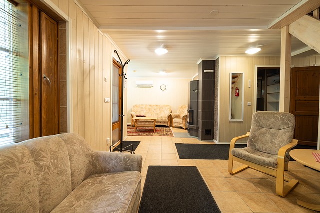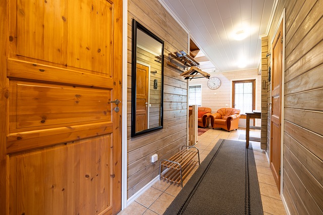 - Eteisen lattiassa laatta, seinät puu ja katossa puupaneeli. Yläkerran lattiassa lautalattia, seinät puu katossa puupaneeli. Takkahuoneessa laattalattia, seinät ja katto puuta.