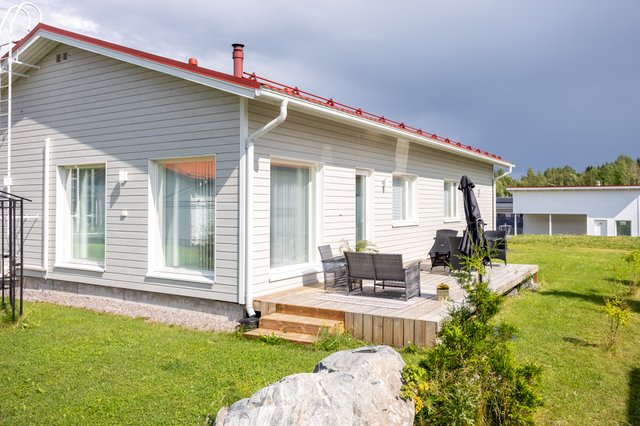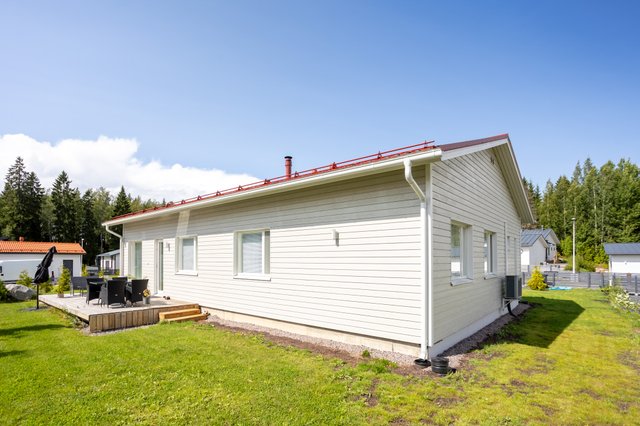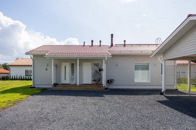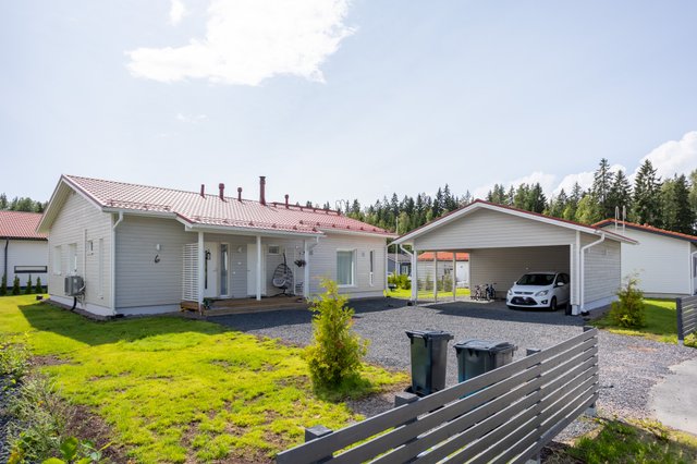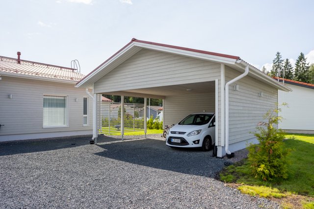 - Päätalon lisäksi myös autokatos- ja varastorakennus.