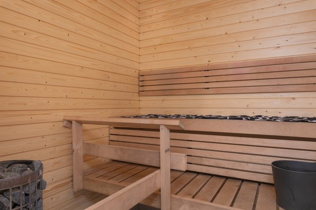 - Varustus: Kiuas, Lauteet Seinät: Paneeli Lattia: Laatta