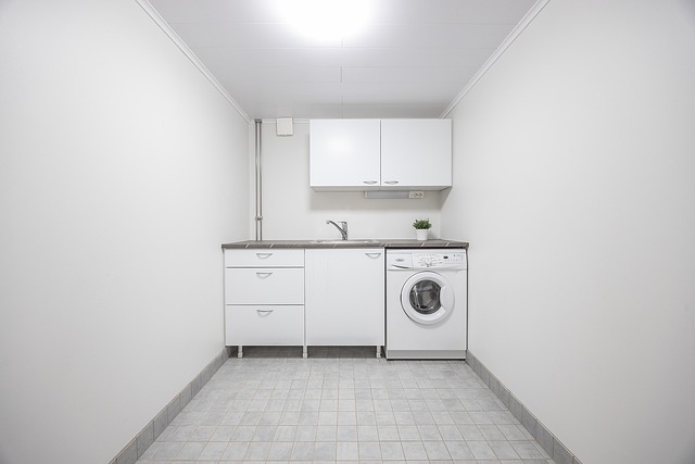 - Kaapistot, allas, allaskaappi, vetolaatikot ja pyykinpesukone.