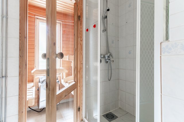 +Tässä asunnossa on oma, jälkikäteen kylpyhuoneeseen tehty oma sauna.