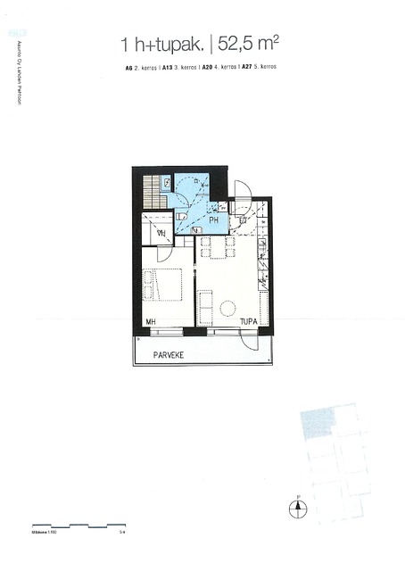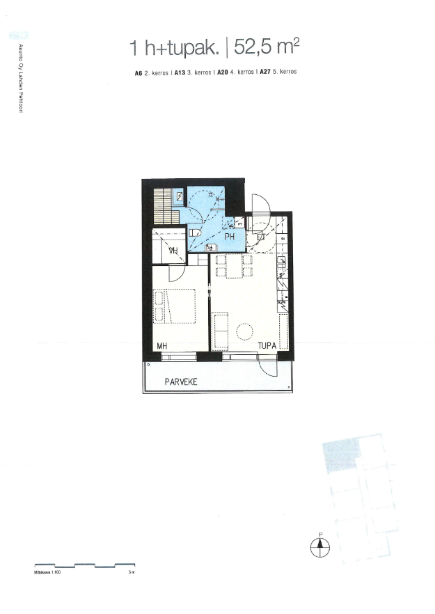 - Huoneisto on yhtiöjärjestyksen mukaan "1 huone + tupakeittiö", käytännössä kuitenkin 2 huonetta + keittiö eli makuuhuone, olohuone, keittiö (olohuone ja keittiö ovat nykyrakentamistyylin mukaisesti yksi avonainen/yhtenäinen kokonaisuus).