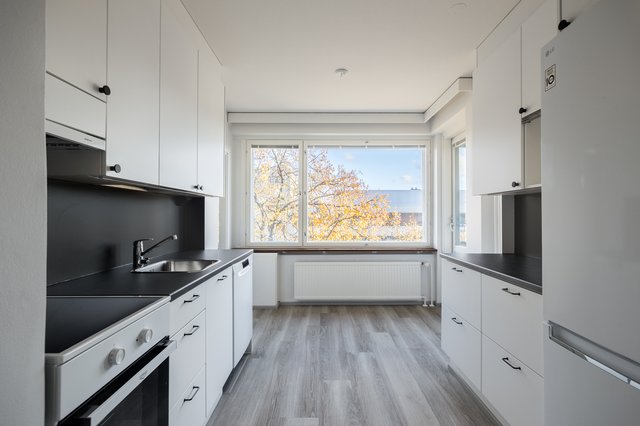 - Keittiö uusittu kokonaisuudessaan 10/2025. Valkoiset kaapistot, uudet kodinkoneet, laminaattilattia.