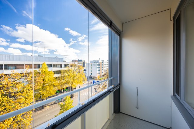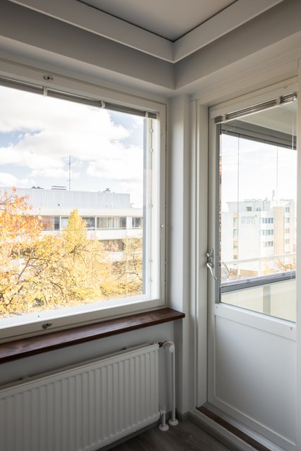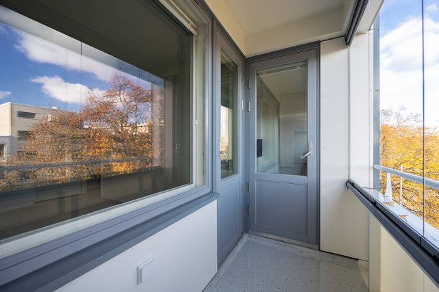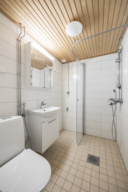 Kylpyhuone on uusittu putkiremontin yhteydessä, ja sieltä löytyy kaikki tarpeellinen, kuten suihkuseinä ja pesukoneliitäntä. Asunnon lasitettu parveke avautuu itään, aamuauringon suuntaan.