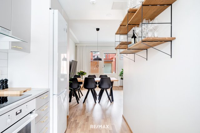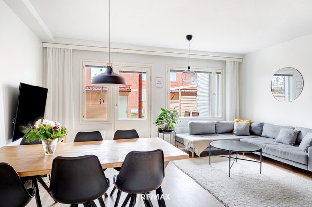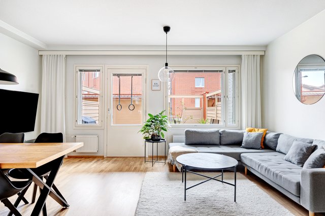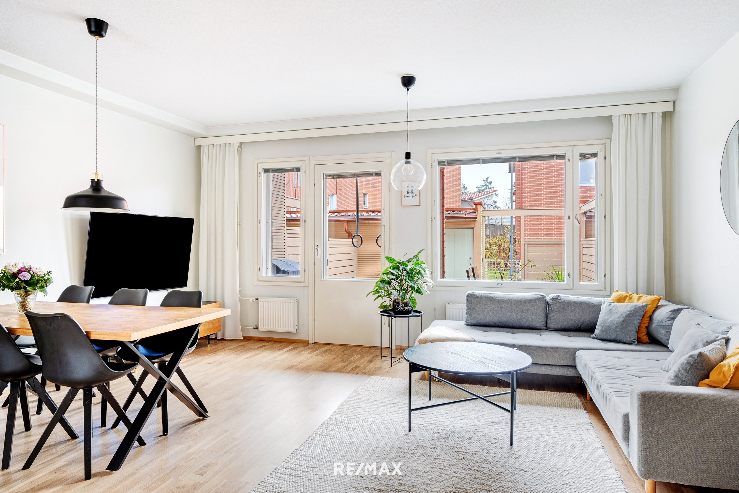 Keittiö on varusteltu äskettäin uusituilla kodinkoneilla, ja olohuoneen parkettilattia luo lämpimän tunnelman. Kesähelteillä arvostat ilmalämpöpumpun tuomaa viileyttä. Asunnon länteen avautuva parveke ja suojaisa terassipiha tarjoavat mukavat tilat ulkoilmasta nauttimiseen. Piha-alue sopii erinomaisesti niin lasten leikkeihin kuin aikuisten illanviettoihin.