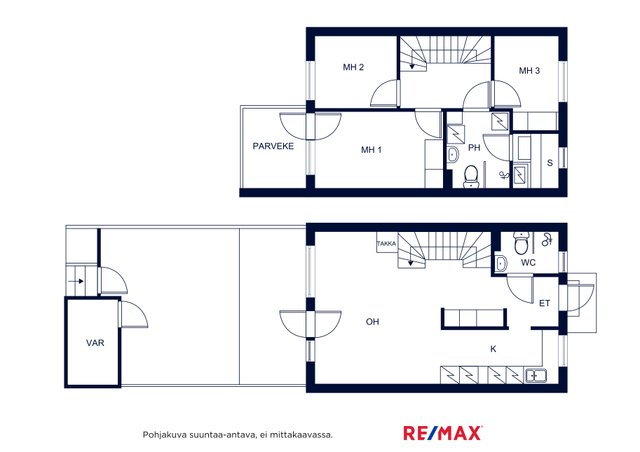 - Kph molemmissa kerroksissa, pk-liitäntä yläkerrassa.