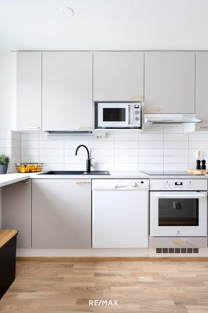 - Jääkaappipakastin (LG, uusittu 2023), erillisuuni (Electrolux, uusittu 2025), liesituuletin (Uusittu 2023), liesi (Electrolux, uusittu 2023), ja astianpesukone
