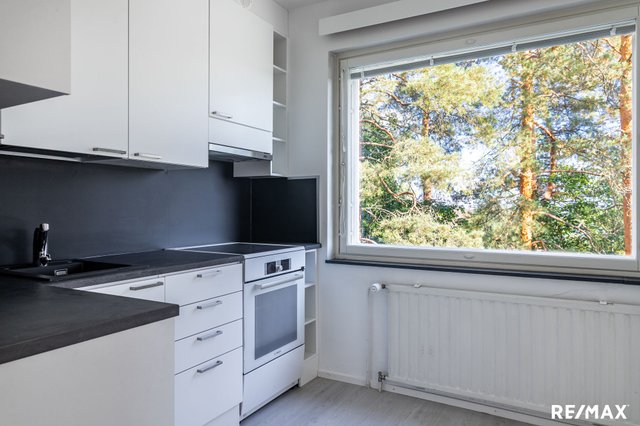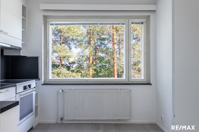 Säilytystilana on eteisessä sijaitseva vaatehuone, jonne mahtuu vaatteiden lisäksi myös muut kodin asumiseen liittyvät tarvikkeet. Olohuone on reilun kokoinen, sinne mahtuu hyvin niin nukkumatila kuin oleskelutilakin. Olohuoneesta käynti parvekkeelle, jota kauniisti hiukan varjostaa upea mänty, maisemat mäen päältä siintävät kauaksi. Taloyhtiö on erittäin hyvin hoidettu, putket ja julkisivut on tehty ja tontti on lunastettu omaksi. Ota yhteys ja mennään katsomaan!