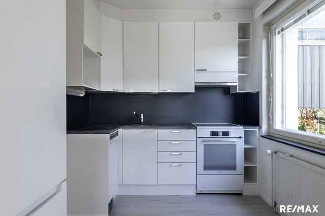 - Keittiö uusittu täysin. Uudet kaapistot ja kodinkoneet. Liesituuletin, induktioliesi, astianpesukone sekä jääkaappi-pakastin. Keittiöön mahtuu hyvin ruokailuryhmä.