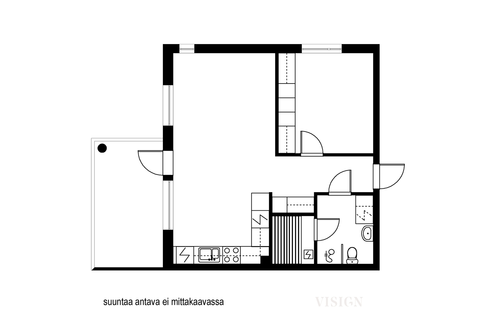 Tämä saunallinen kaksio sijaitsee 2018 rakennetun kerrostalon ensimmäisessä kerroksessa. Lämmitysmuotona on lattialämmitys kaukolämmöllä. Asuinhuoneissa lattiat ovat parkettia ja seinät on pääosin tapetoitu. Pesuhuoneessa on laatoitetut pinnat ja varusteisiin kuuluu lisäksi pyykinpesukone ja kuivausrumpu. Oma sauna on mukavaa luksusta. Keittiössä on hyvin kaappi- ja työtasotilaa. Säilytystilaa on makuuhuoneen kaapistoissa ja eteisessä peililiukuovien takana. Etelän puolella oleva lasitettu parveke on tilava ja viihtyisä oleskelutila ympäri vuoden. Huoneistoon on asennettu ilmalämpöpumppu viilennystä varten.