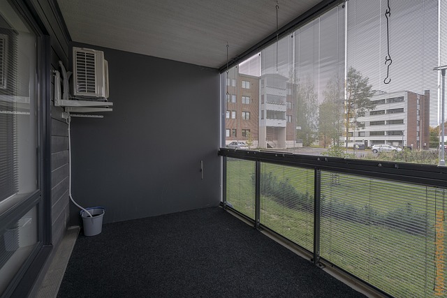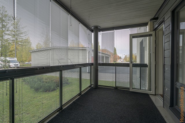- Lasitetulla parvekkeella on valmiina kaihtimet ja terassimatto.