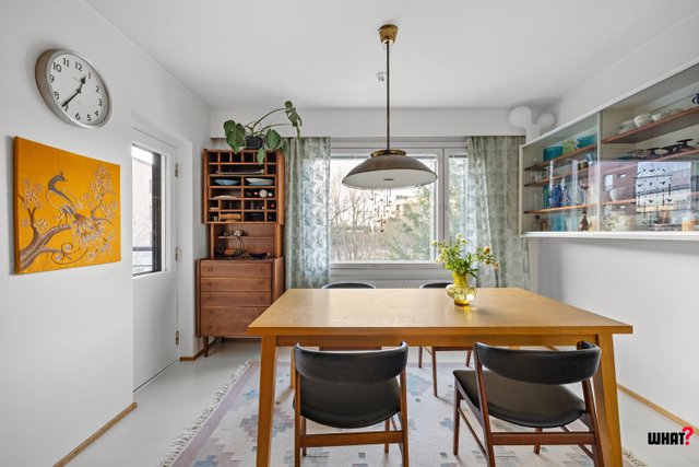 Tervetuloa tutustumaan tähän 114 m²:n päätyasuntoon Viikinrannan rauhallisella ja vehreällä alueella. Vuonna 1969 rakennetussa, hyvähenkisessä taloyhtiössä on vain neljä asuntoa, mikä tuo asumiseen yksityisyyttä ja pientalomaista tunnelmaa. Asunto sijaitsee toisessa kerroksessa (2/2) ja tarjoaa toimivat puitteet niin suuremmalle perheelle kuin etätyötä tekevälle.