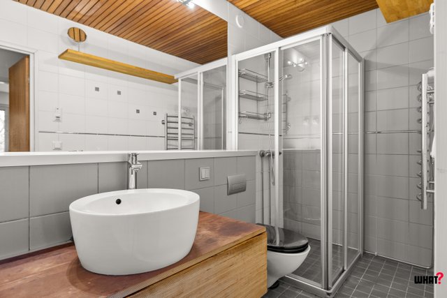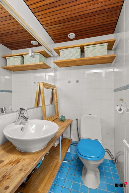 - Suihku, suihkukaappi, allaskaappi, peili, lattialämmitys, pesukoneliitäntä, ja wc-istuin