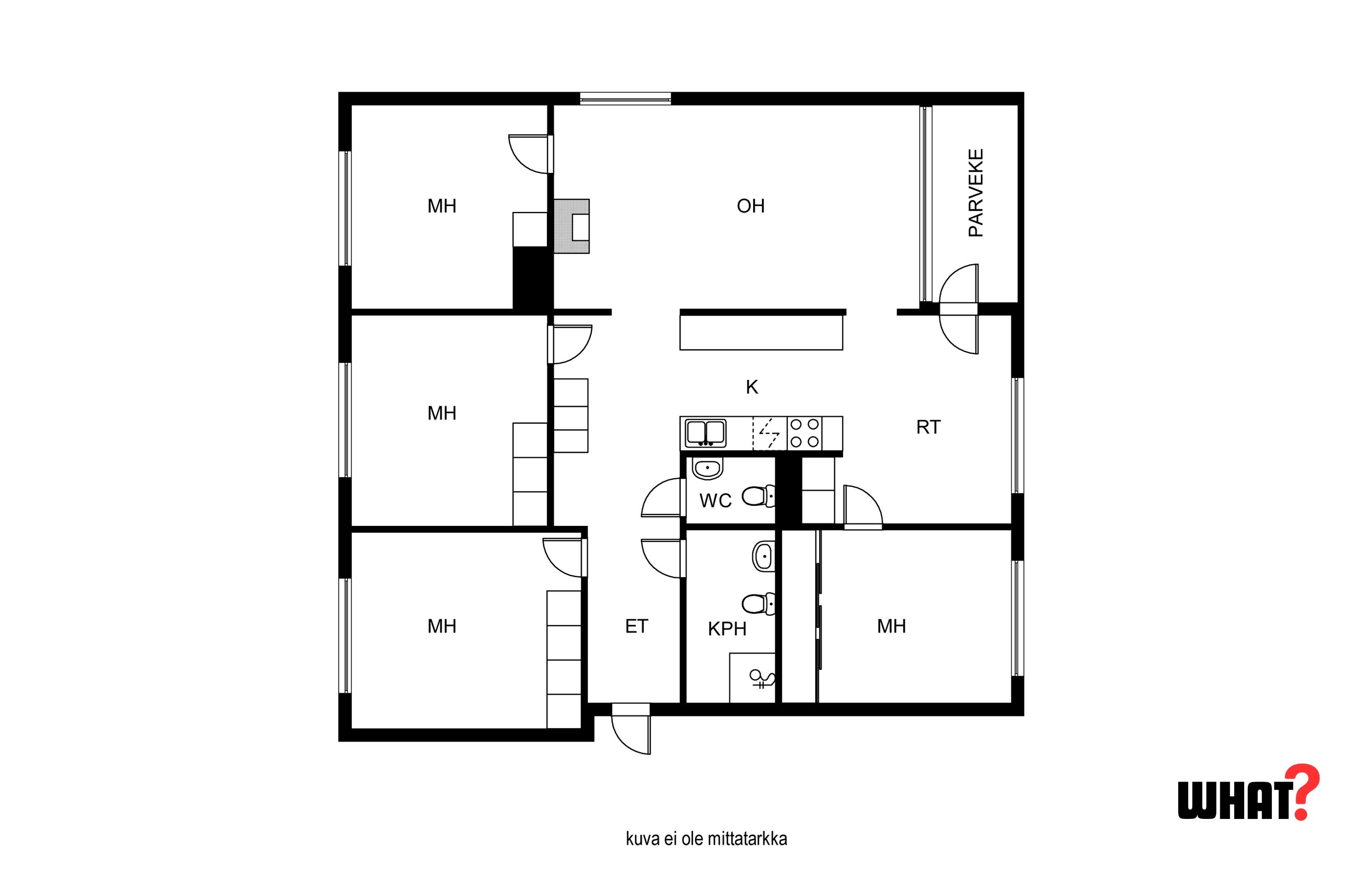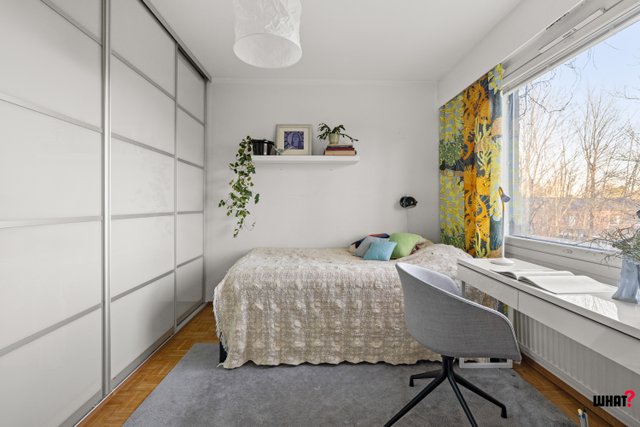 Kodissa on neljä makuuhuonetta, joten tilaa riittää erinomaisesti perheelle – tai vaihtoehtoisesti yksi huoneista muuntuu helposti työhuoneeksi tai harrastetilaksi. Makuuhuoneissa on kaappitilaa, jotka helpottavat arjen säilytystarpeita. Asunto on siisti ja persoonallinen, ja olohuoneen tunnelmatakka tuo tilaan lämpöä ja kodikkuutta.