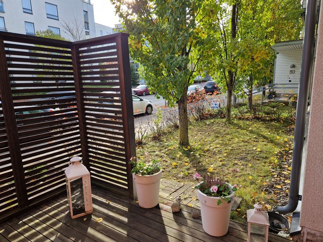 Tähän kotiin on kaksi sisäänkäyntiä. Alakerrasta löytyy kaksi makuuhuonetta. Isommasta huoneesta on käynti asunnon omalle terassille, sekä piha-alueelle, jossa pääset nauttimaan oleilusta vaikka grillauksen merkeissä tai saunan jälleen vilvoittelusta. Kylpyhuone on tilava, tarjoten kaksi suihkua, saunan sekä paikan myös pyykkihuollolle. Yläkerrassa olohuone-keittiö muodostavat toimivan yhtenäisen tilan. Keittiö on varustettu mm. liikuteltavalla saarekkeella, joka tarjoaa lisäsäilytys-ja työskentelytilaa. Makuuhuoneesta on käynti lasitetulle parvekkeelle. Myös tässä kerroksessa on wc. Useat kaapistot, vaatehuone, sekä häkkivarasto takaavat hyvät säilytystilat.