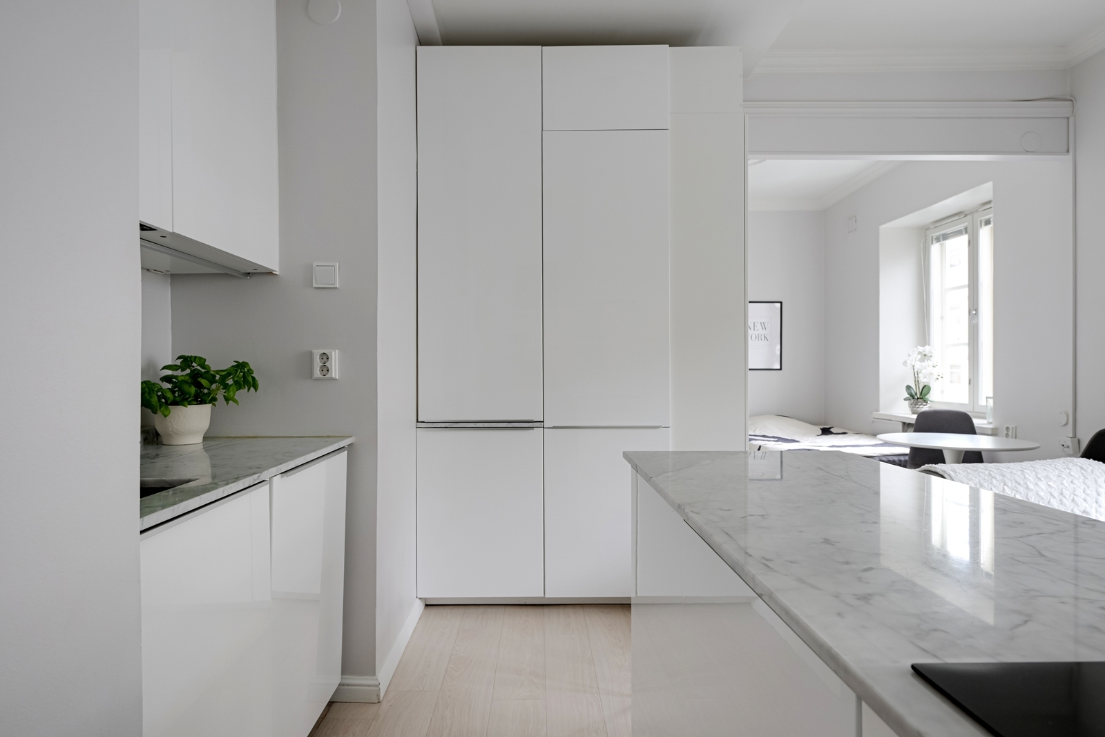 Asunto on läpikäynyt täyden, erinomaisesti suunnitellun ja laadukkaan remontin. Keittiö on toteutettu integroiduilla kodinkoneilla, kivitasoilla ja runsaalla säilytystilalla. Tyylikäs kylpyhuone tarjoaa arjen luksusta ja sinne mahtuu myös pesukone.